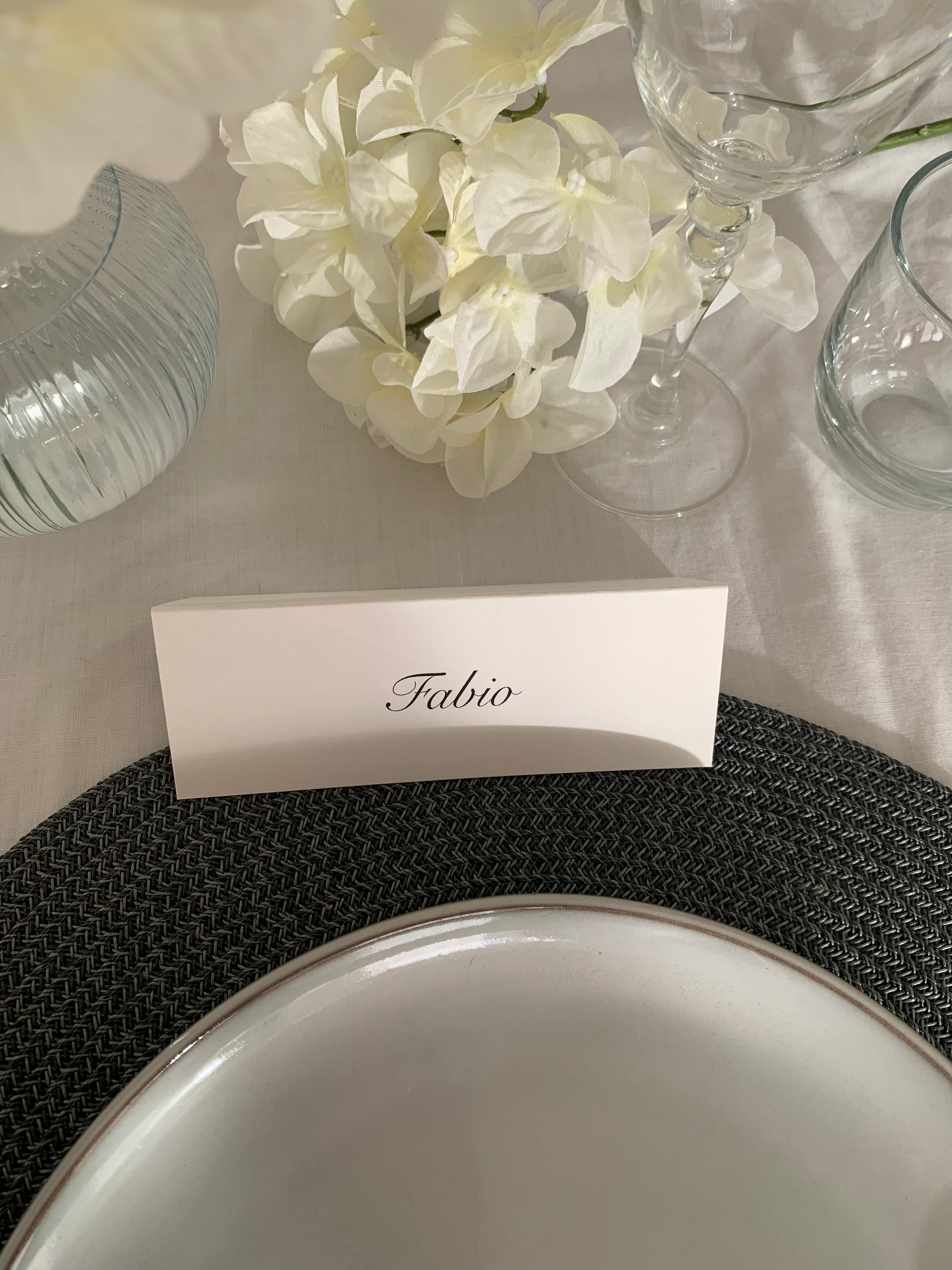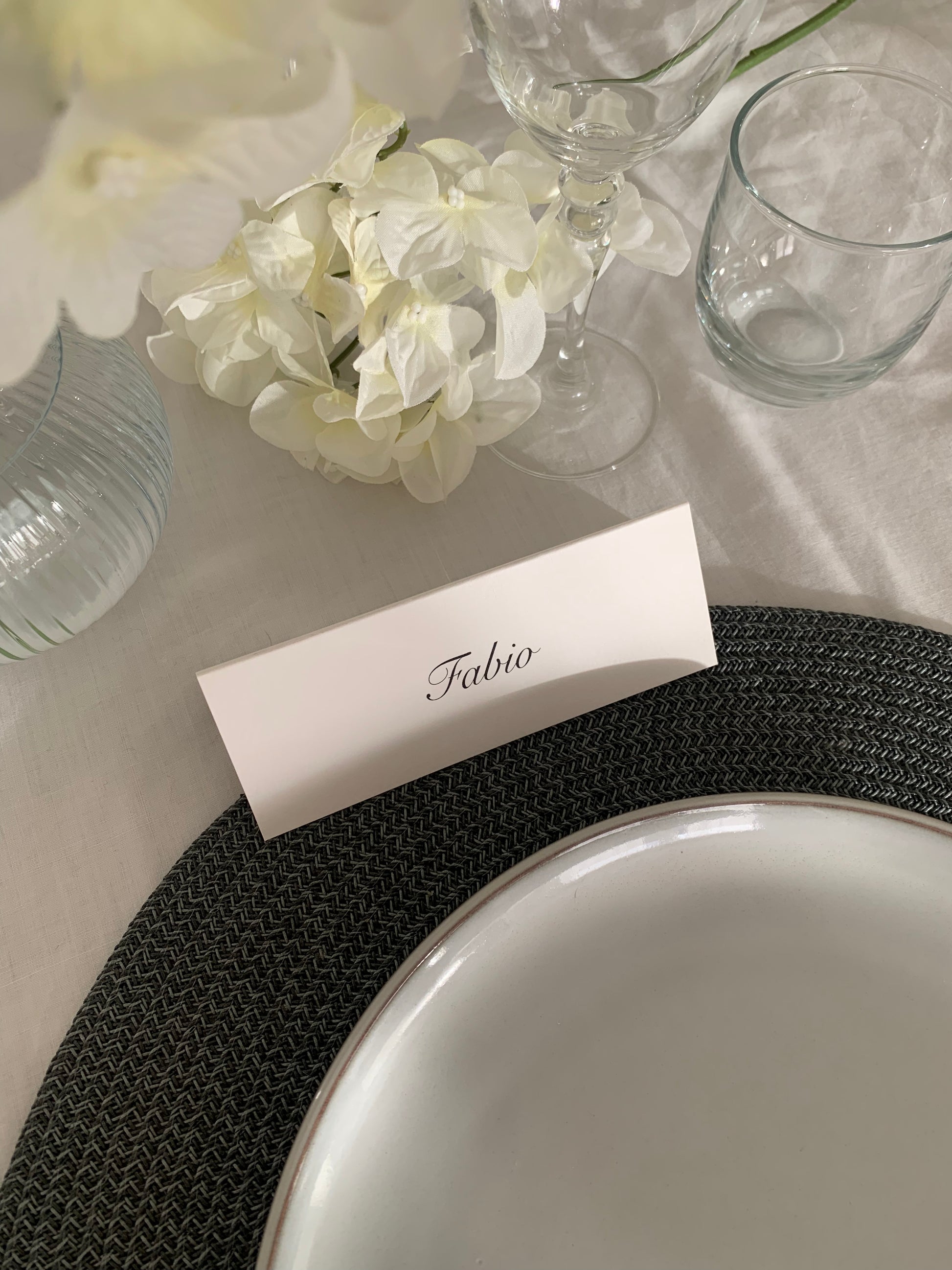 El marca sitio Mónaco es la definición de elegancia clásica en su forma más pura. Realizado en papel de alta calidad y con un diseño plegado tradicional, destaca por la tipografía cursiva que personaliza el nombre de cada invitado.