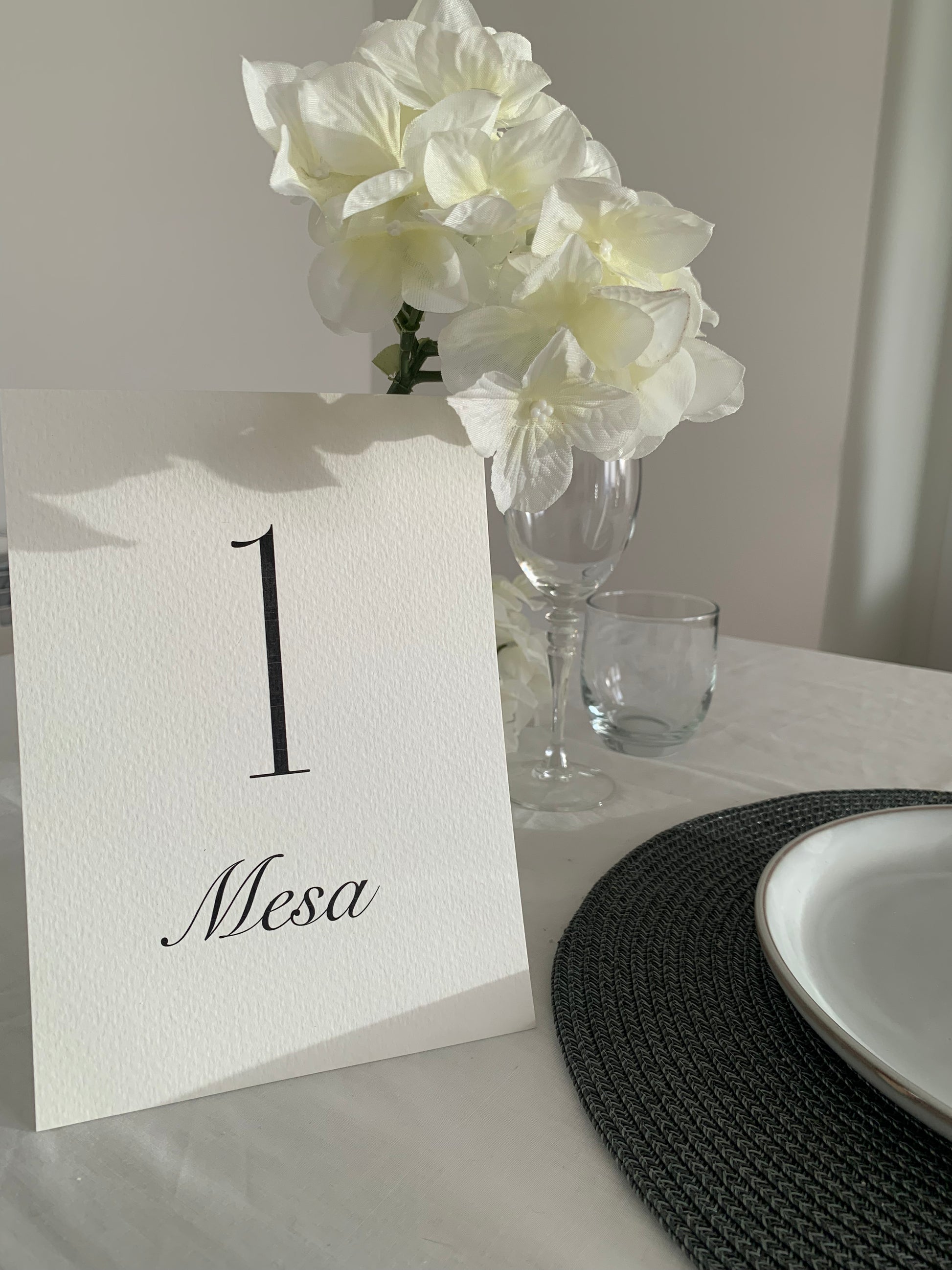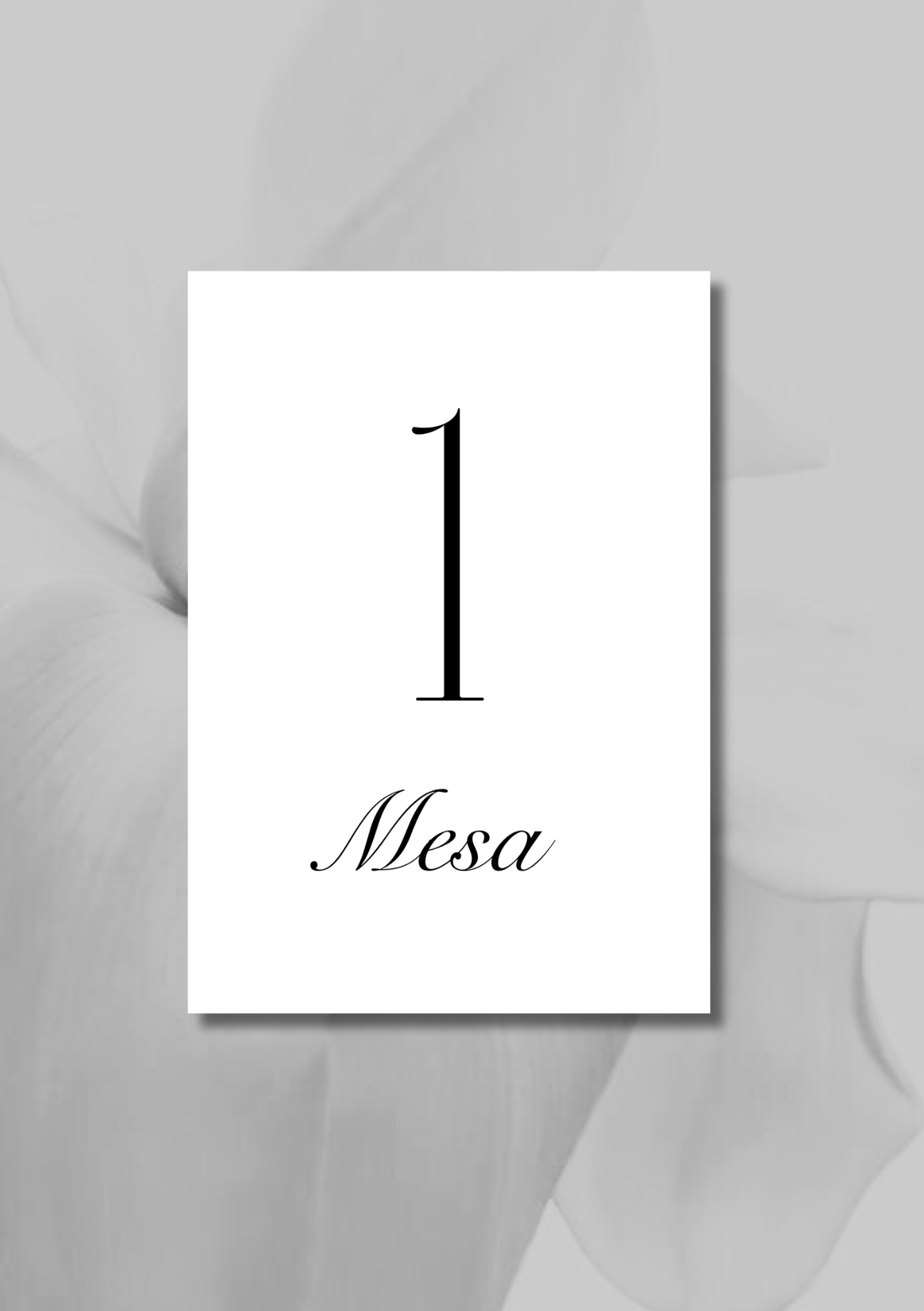 Impreso en papel de alta calidad en tono beige, presenta únicamente el número de mesa en una tipografía delicada, perfecta para bodas clásicas y sofisticadas.